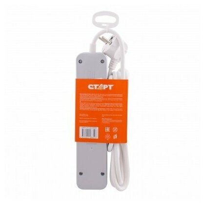 Удлинитель сетевой бытовой c заземлением 3м старт 3 розетки, 10А, с защитой от детей 687 ₽