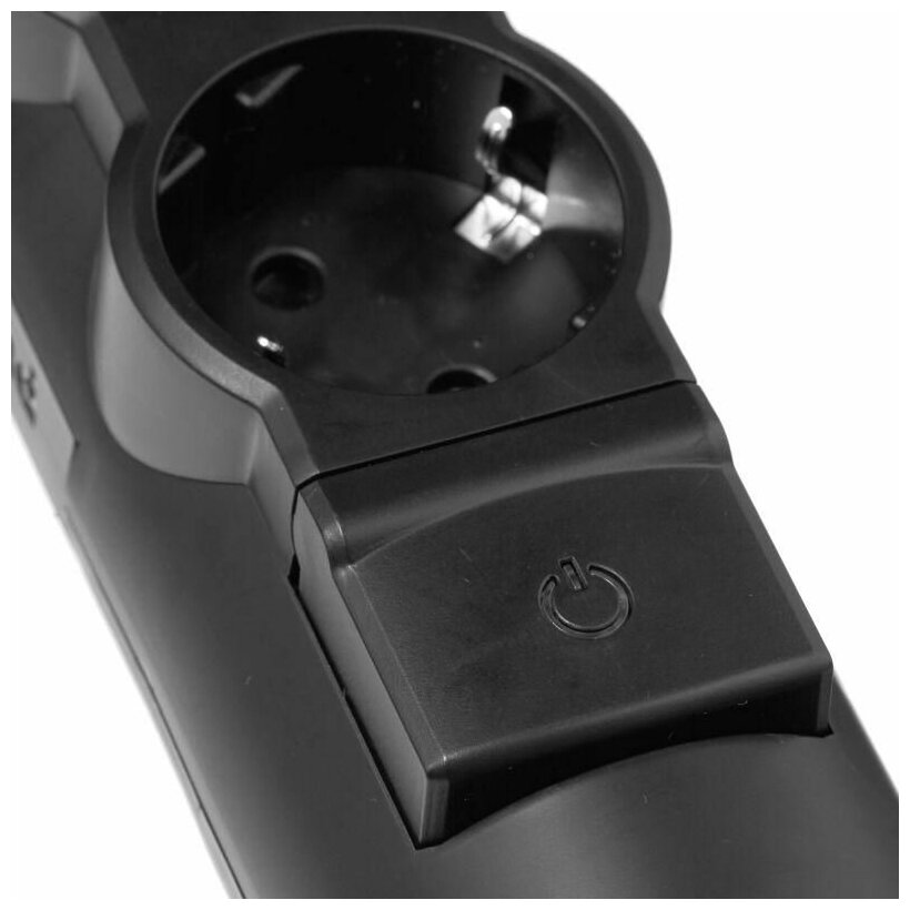 Удлинитель с заземлением Legrand 6 розеток с кабелем 1,5 м, с кнопкой включения и поворотным основанием, цвет: черный , арт. 694534