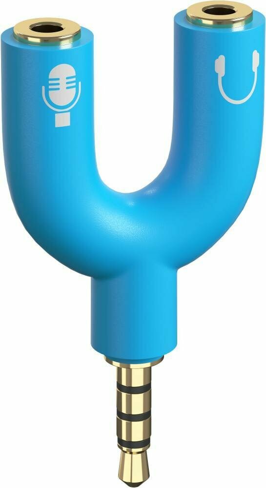 Аудио переходник GSMIN на микрофон и наушники 3.5мм (AUX сплиттер) (Голубой) информация: