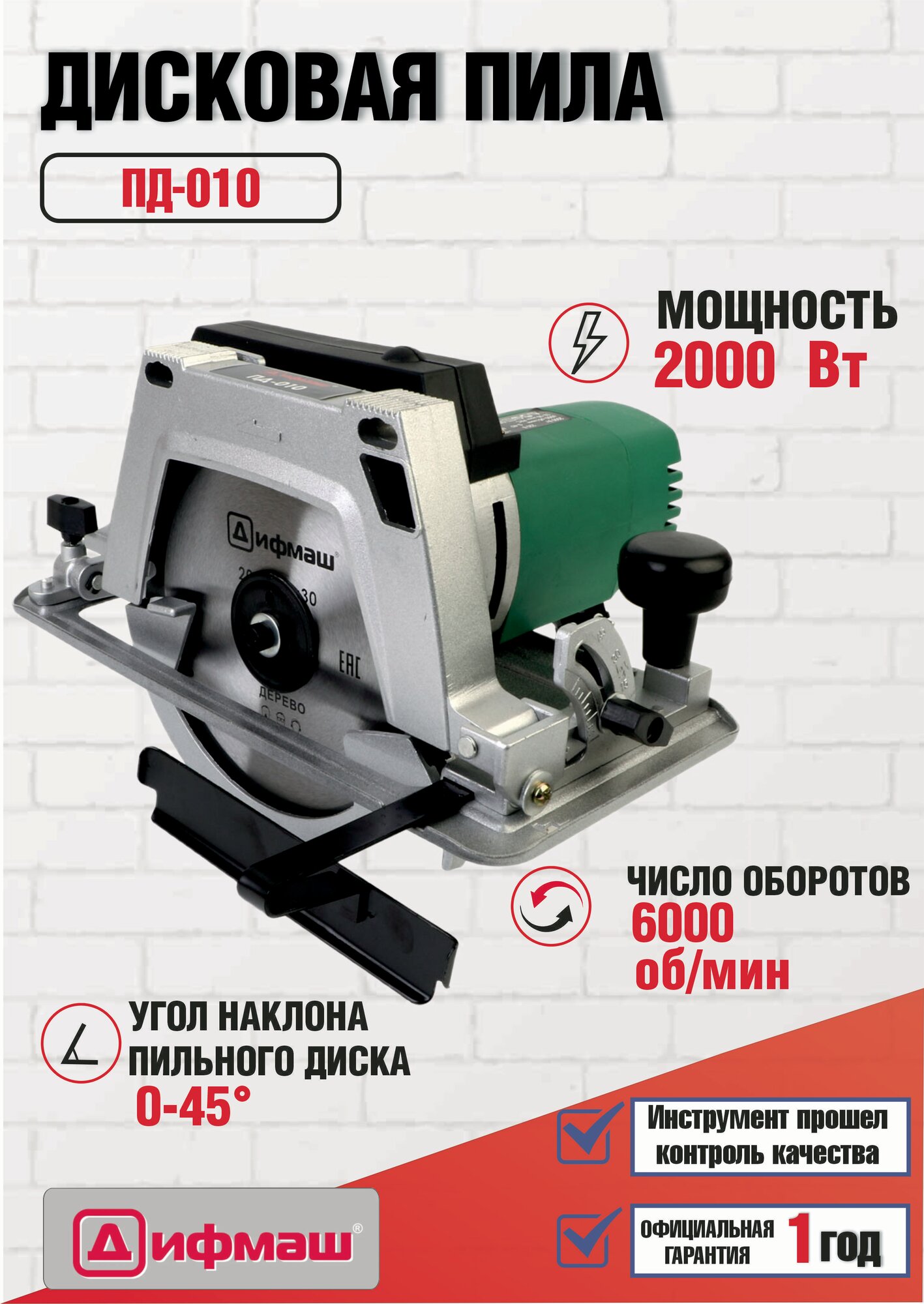 Пила дисковая Дифмаш ПД-010 2000Вт 6 550 ₽