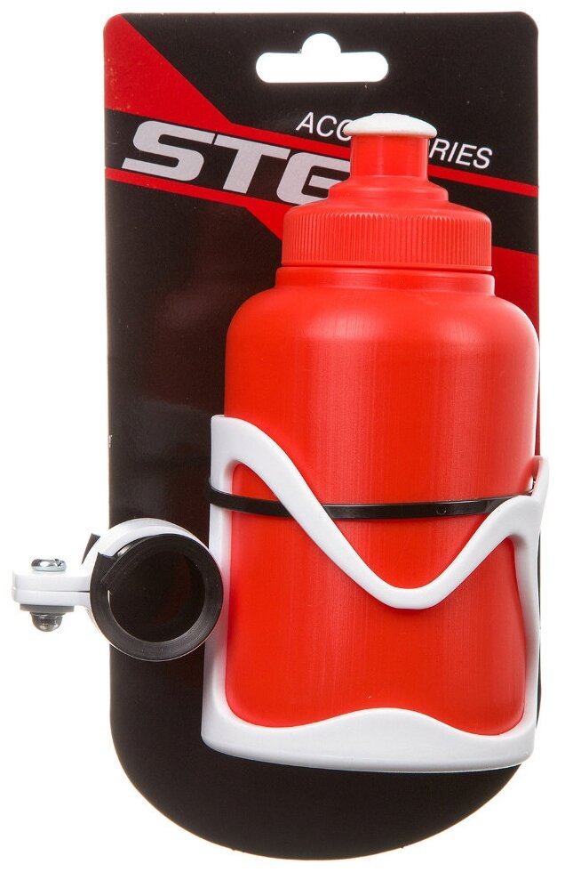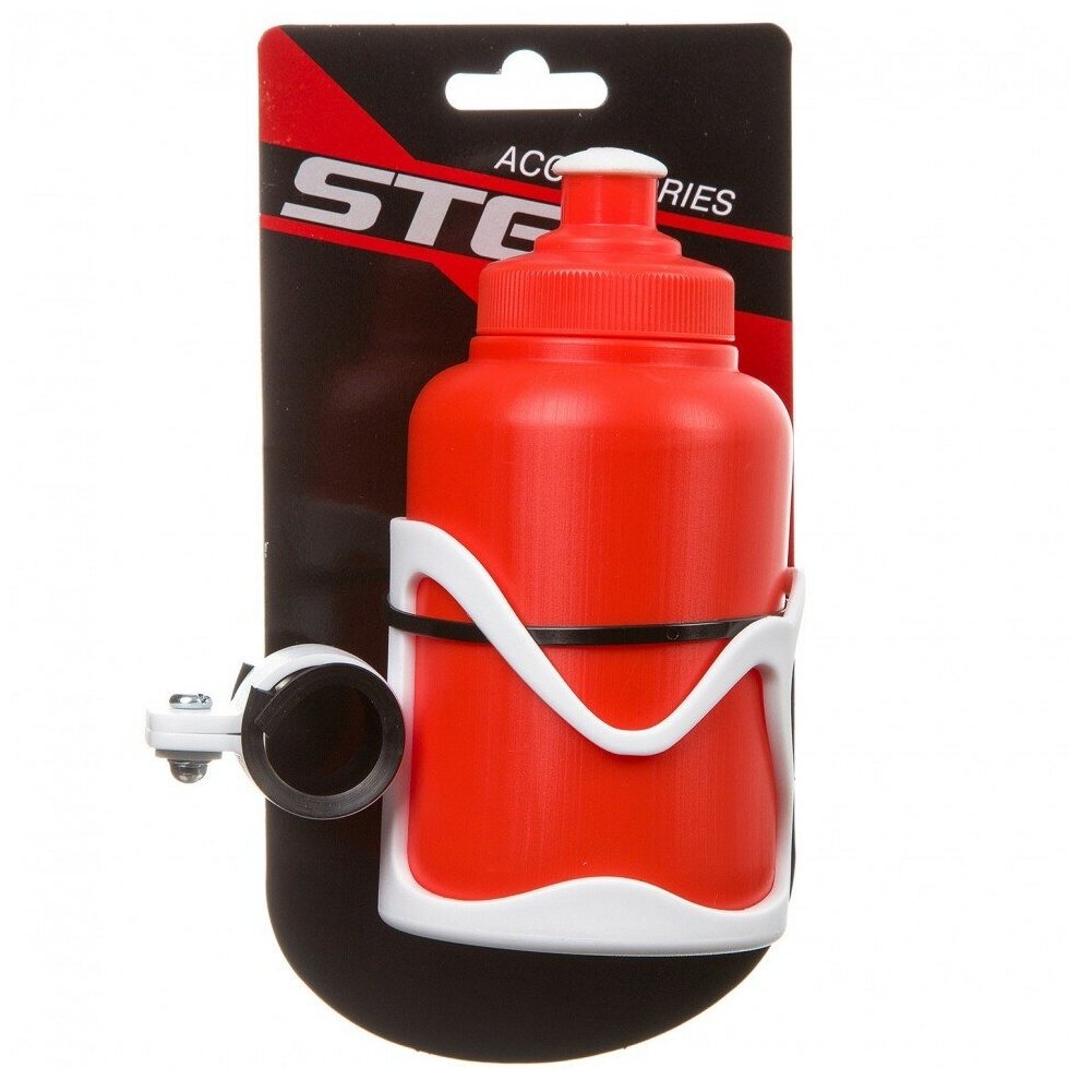 Велофляга STG с флягодержателем детская (Белый флягодержатель, Оранжевая фляга).