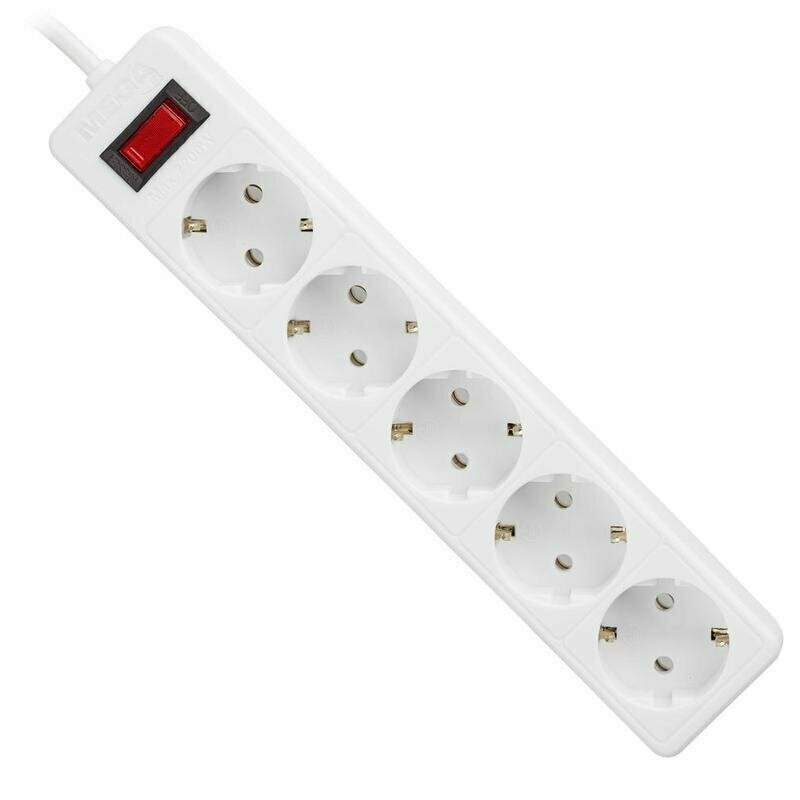 Сетевой фильтр ProMEGA Jet, 5 розеток, 1,8 м, с заземлением, 10 А, 2200 Вт, предохранитель, белый