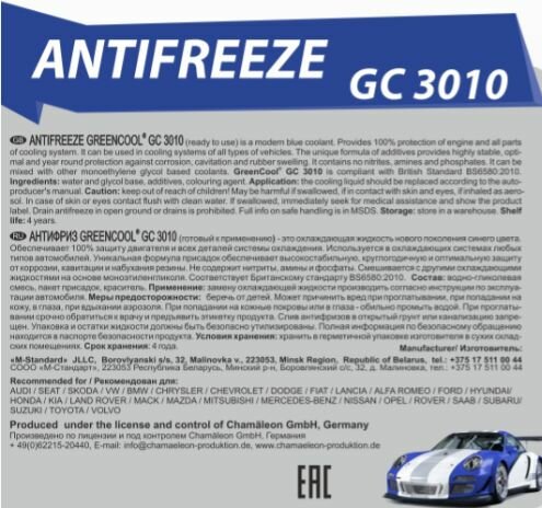 Отзывы на GreenCool / 791968 / Антифриз GreenCool GC3010 G11, 1 кг (син.)