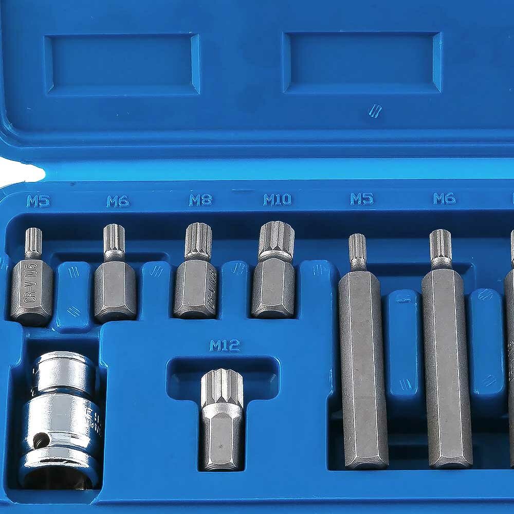 Набор бит SPLINE, 11 пр, 30 мм: M5, M6, M8, M10, M12, 75 мм: M5, M6, M8, M10, M12, в пласт. боксе Vorel 66770