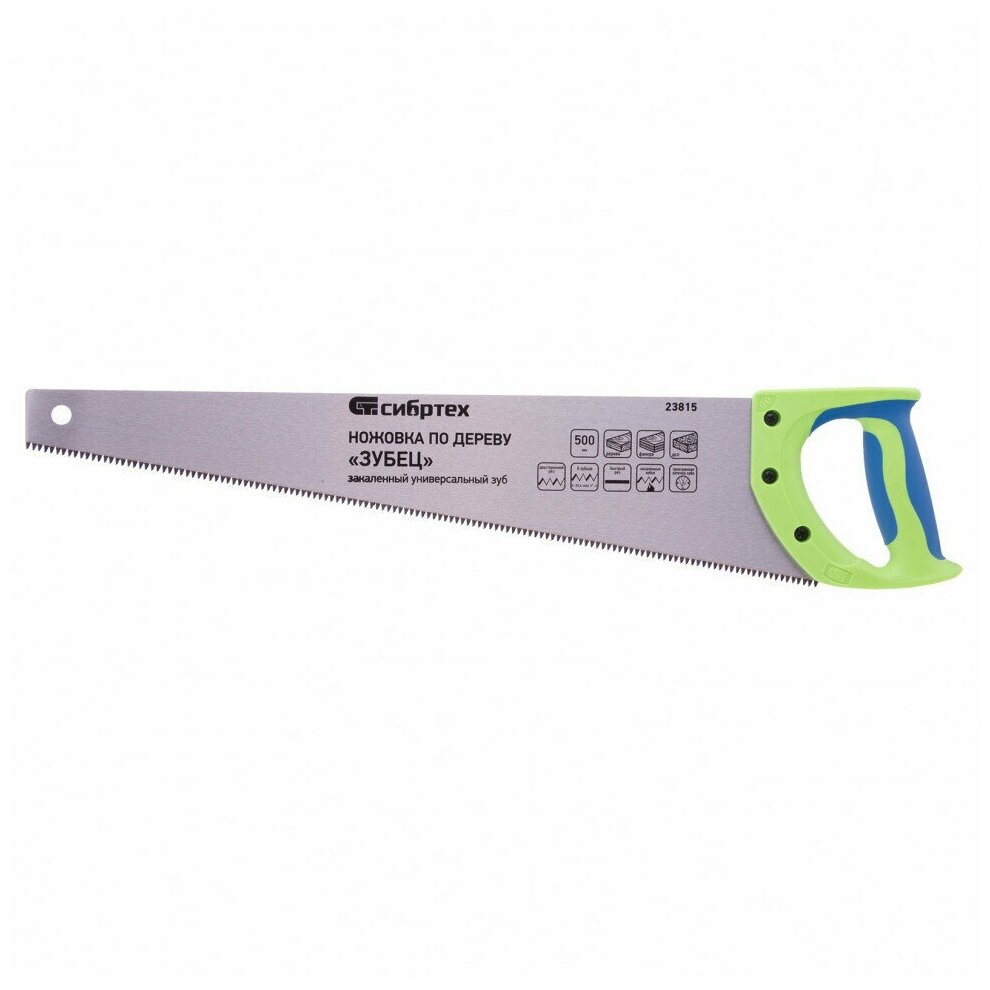 Ножовка по дереву "Зубец", 500 мм, шаг зуба 10 мм, каленый зуб 2D, двухкомпонентная рукоятка Сибртех