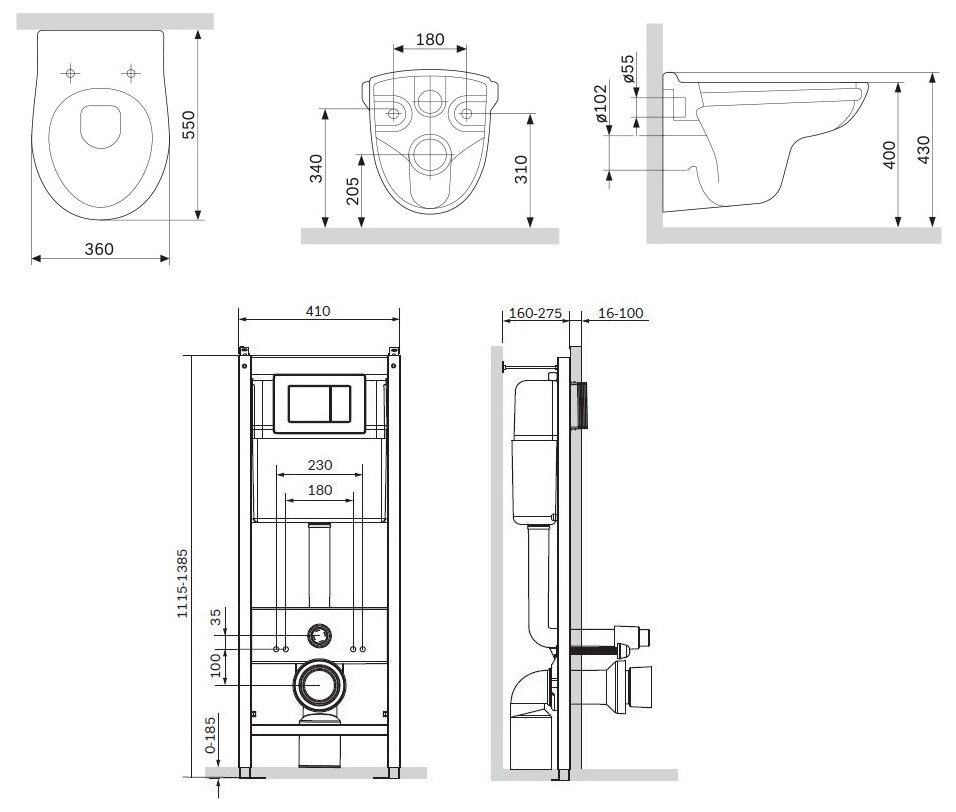 Комплект IDDIS Basic BASBQ02i73: подвесной унитаз, инсталляция и черная клавиша смыва