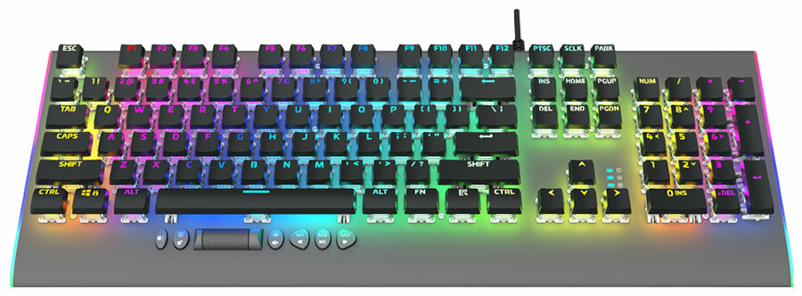 Клавиатура игровая AULA F2099 механическая 106 кл, алюминий/пластик, роллер+5 доп кнопок, RGB подсветка - кабель 1.6м