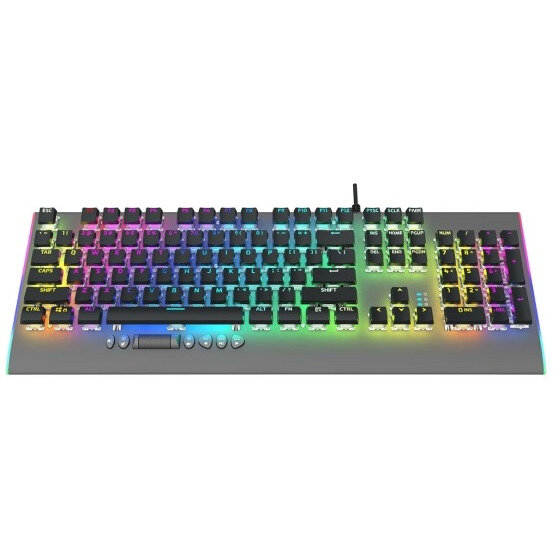 Клавиатура игровая AULA F2099 механическая 106 кл, алюминий/пластик, роллер+5 доп кнопок, RGB подсветка - кабель 1.6м