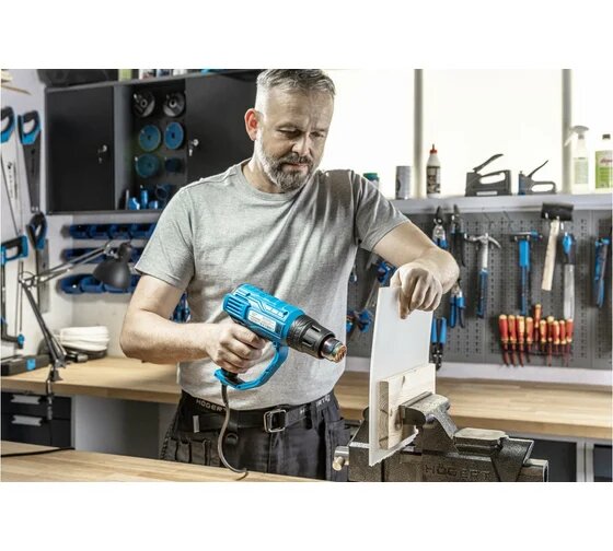 Фен промышленный профессиональный с ЖК дисплеем - тонкая настройка теплового контроля, защита от перегрева HOGERT