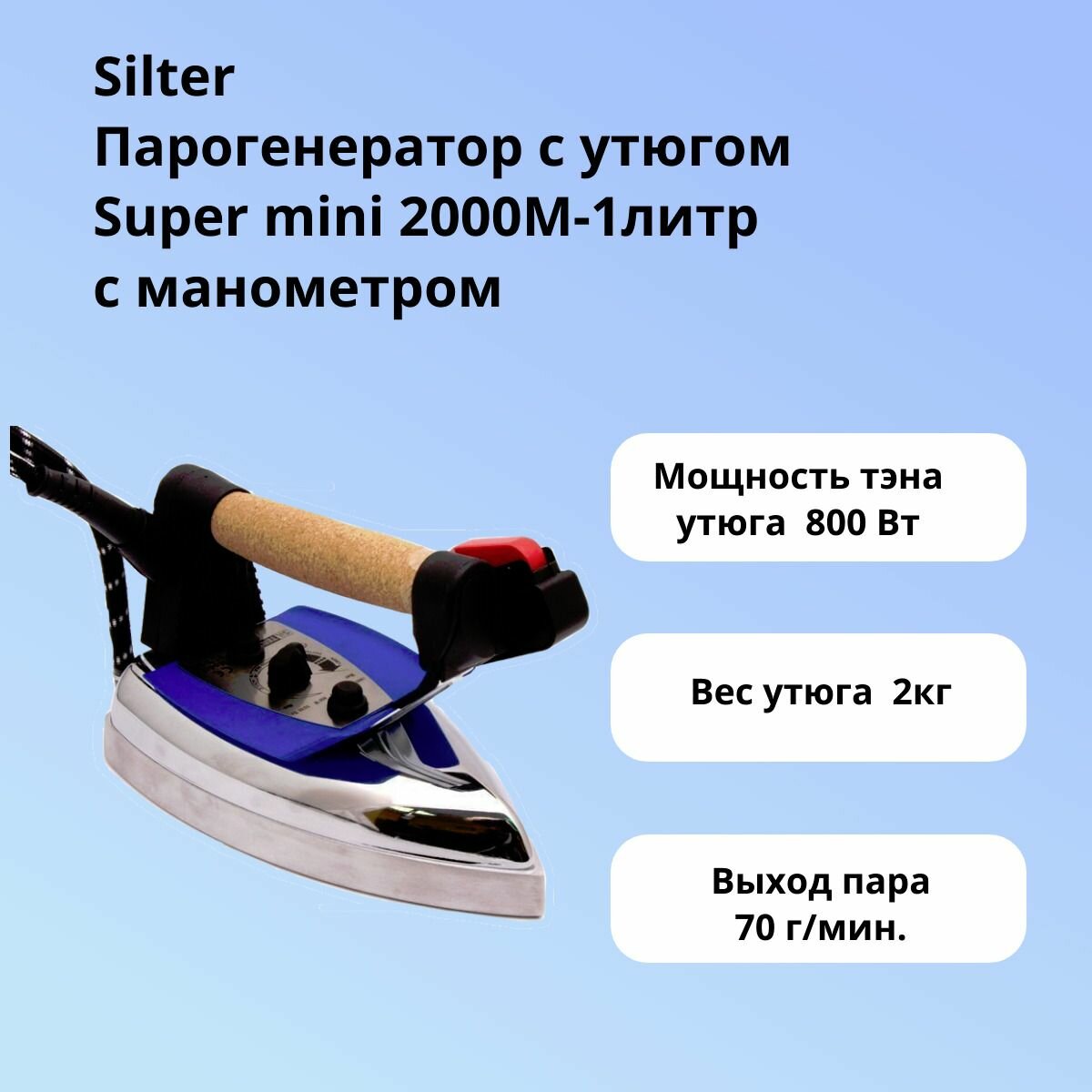 Парогенератор с утюгом Silter Super mini 2000M-1литр (с манометром) информация: