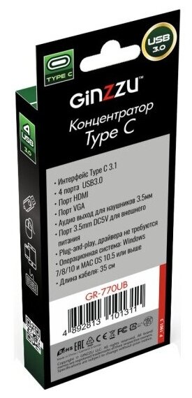 Концентратор Ginzzu , интерфейс Type C 3.1, черный, GR-770UB информация: