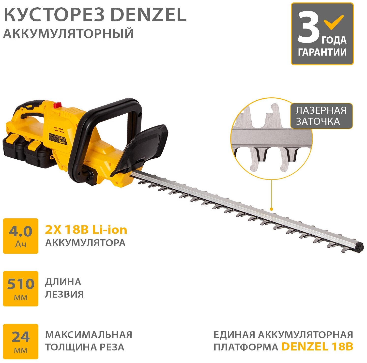 Аккумуляторный кусторез Denzel RBC510-36 36 В, 4 А*ч 59410 . информация: