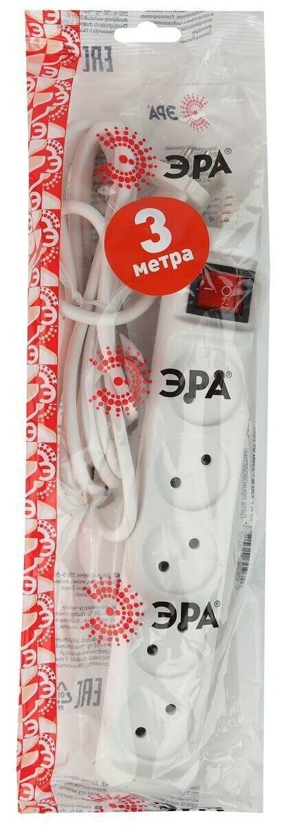 Отзывы на Удлинитель без заземления с выключателем ЭРА U5s3m2x1, 5гн, 3м, Пвс, 2х1мм2, 10А 20/600 Б0044056 .