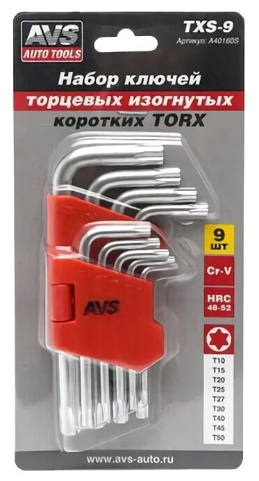 Отзывы на Набор ключей торцевых изогнутых коротких TORX 9 предметов (T10-T50) AVS TXS-9