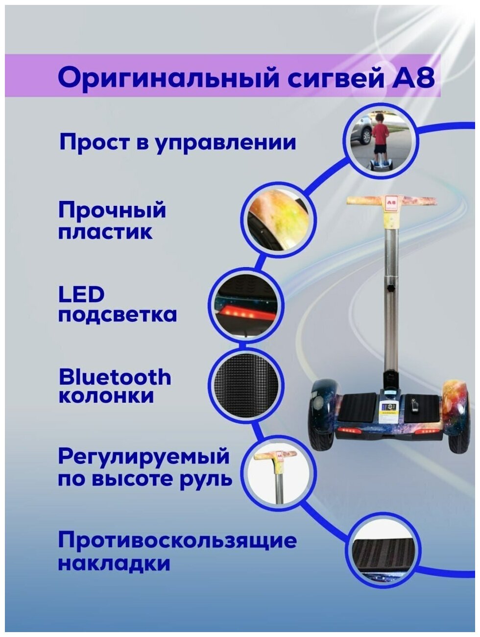 10 цен на Сигвей MINIPRO A8 PRO - синий космос