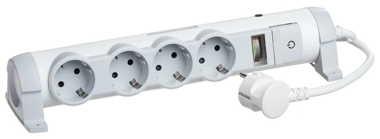 Удлинитель с заземлением Legrand 4 розетки с кабелем 1,5 м, цвет: бело-серый , арт. 694552