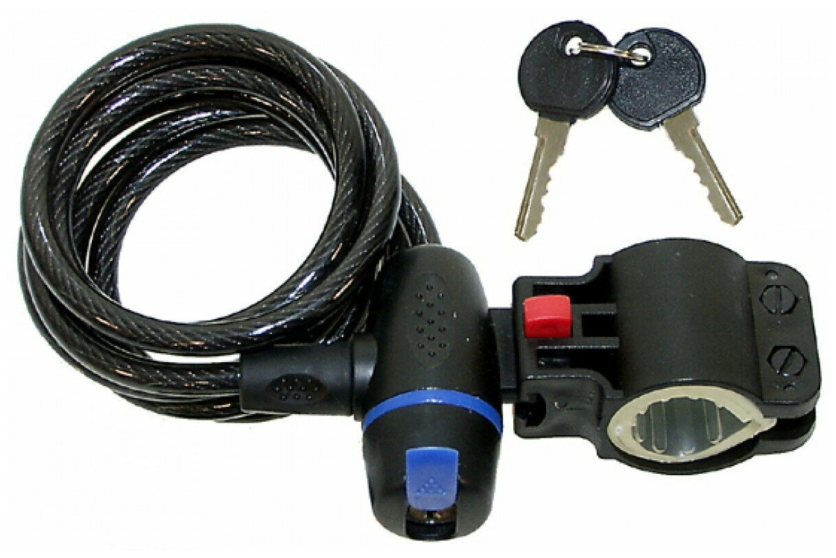 40052 Замок велосипедный тросовый с ключом, замок для коляски, для самоката BASARA B3-1000 MBP, 1000 мм