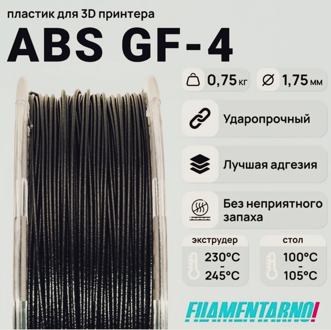 Пластик для 3D принтера Filamentarno 1.75 мм. ABS GF-4 (0.75 кг) черный информация: