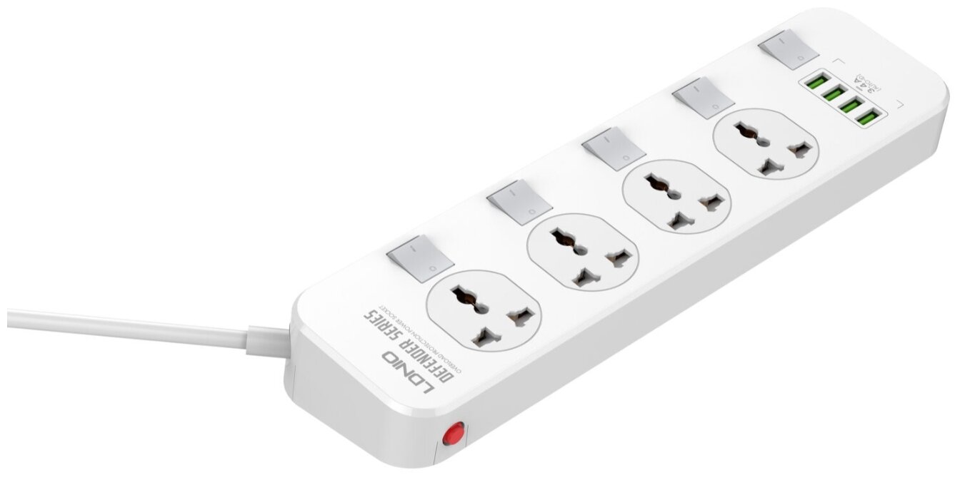 Сетевой фильтр LDNIO SC4408/ 2м/ 4 роз. EU_UK_US/ 2500W/ 4 USB/ Выключатели на роз./ белый