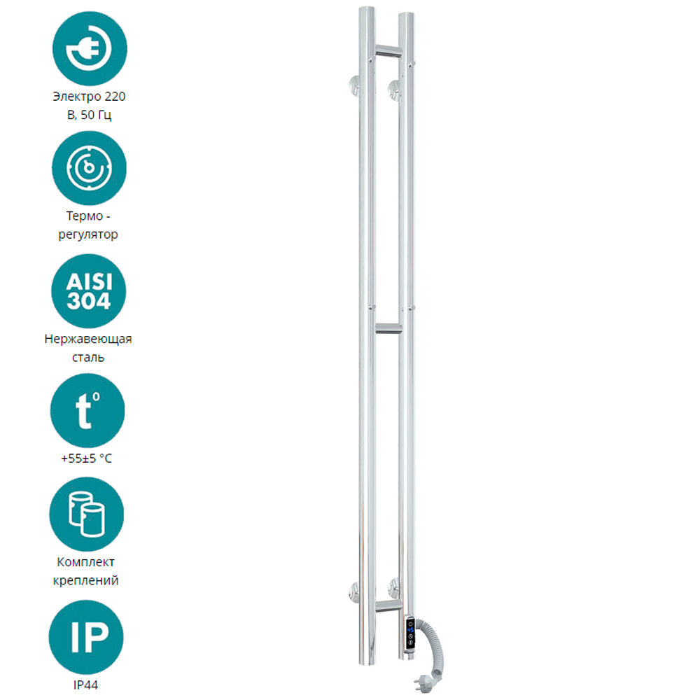 Полотенцесушитель электрический Laris Прайм дуэт 80х1200 белый круглый Левое подключение