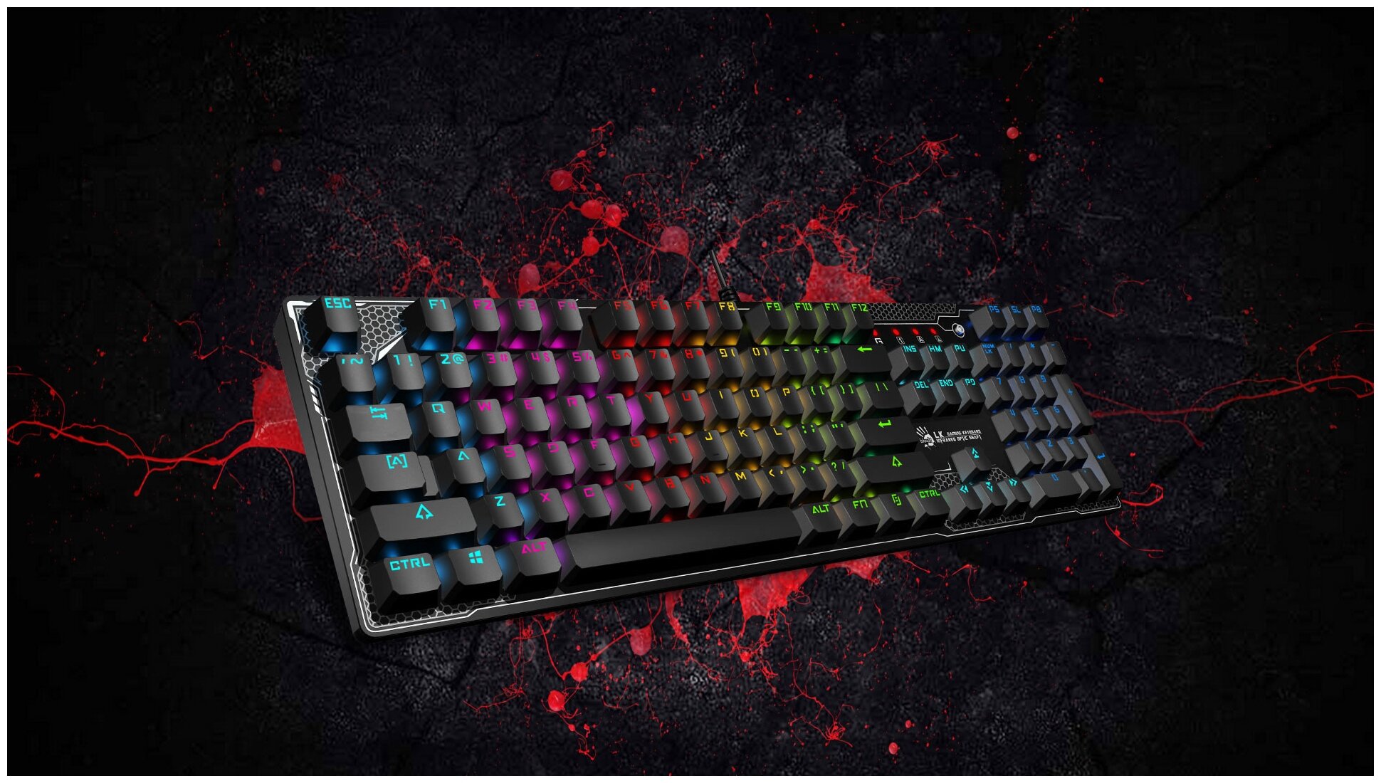 | Дополнительная информация | 6 эффектов RGB подсветки; регулируемая яркость подсветки; 100% N-клавишное нажатие; влагозащитное нанопокрытие; отклик 0.2 мс; технология Anti-Ghost; мультимедийные горячие клавиши; усиленный пробел; ресурс клавиш до 100 млн. нажатий |