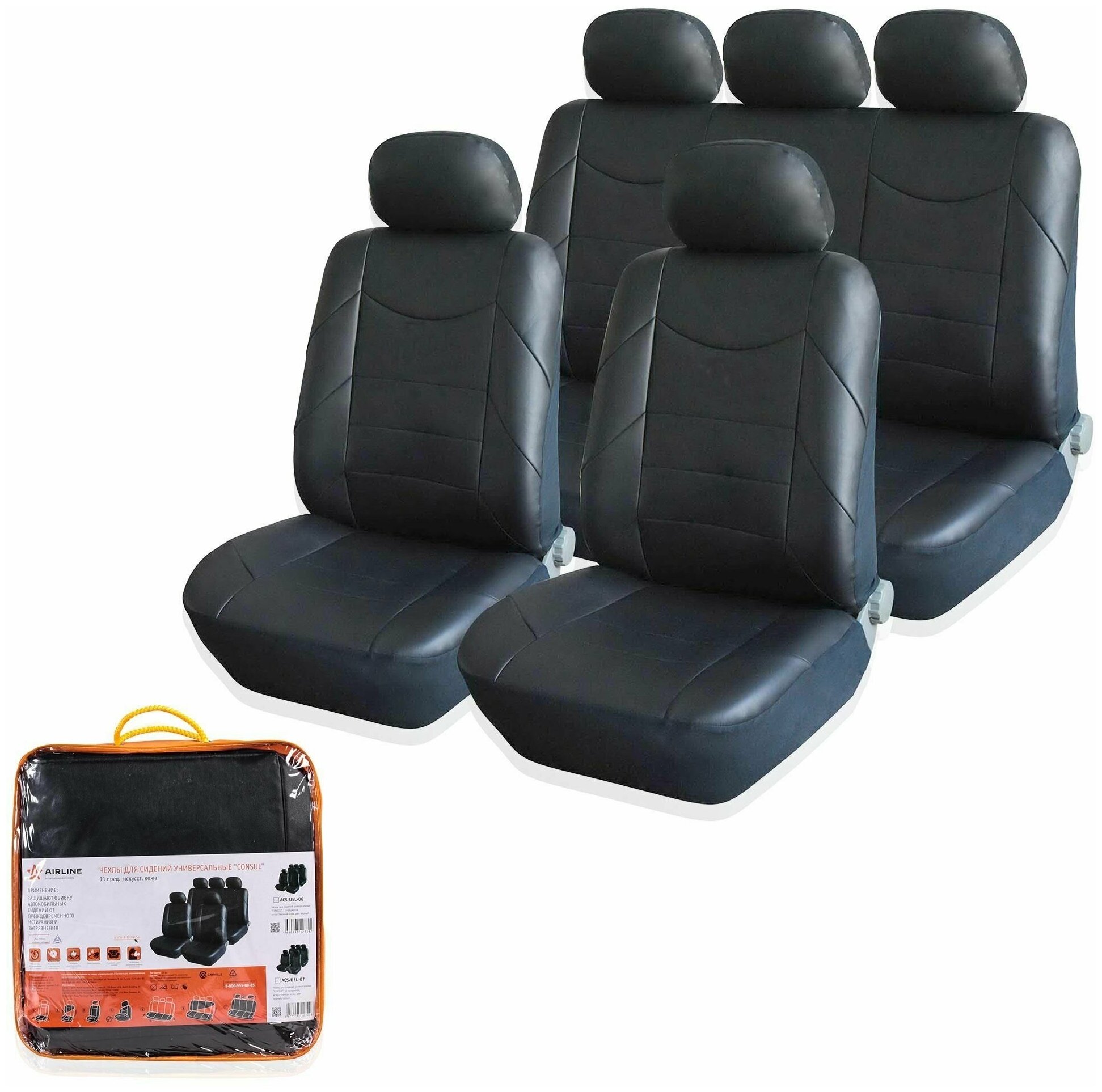 AIRLINE ACS-UEL-06 Чехлы для сидений универсальные CONSUL, 11 пред, искусст.кожа, черн. (ACS-UEL-06) 1шт 4 030 ₽