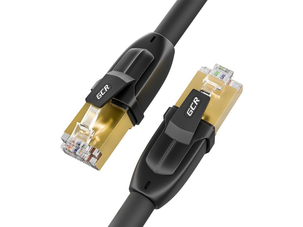 Патч-корд 2м F/FTP PROF cat.7 10 Гбит/с RJ45 LAN компьютерный кабель для интернета 24K GOLD экранированный черный (GCR-FTP701)
