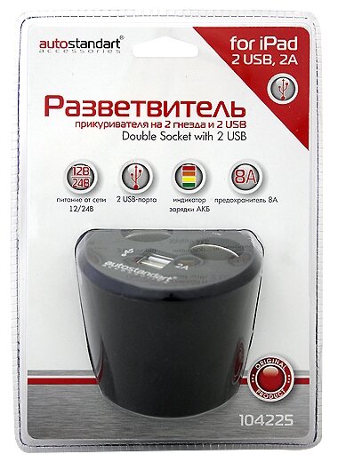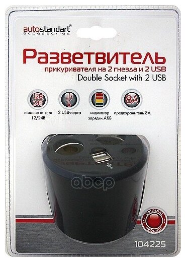 Отзывы на AUTO-STANDART 104225 разветвитель прикуривателя на 2 гнезда + 2 USB AUTOSTANDART 104225 В подстаканник