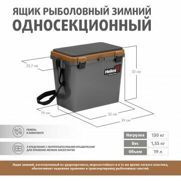 Ящик рыболовный зимний односекционный серый/золото Helios (HS-IB-19GGo-1) информация: