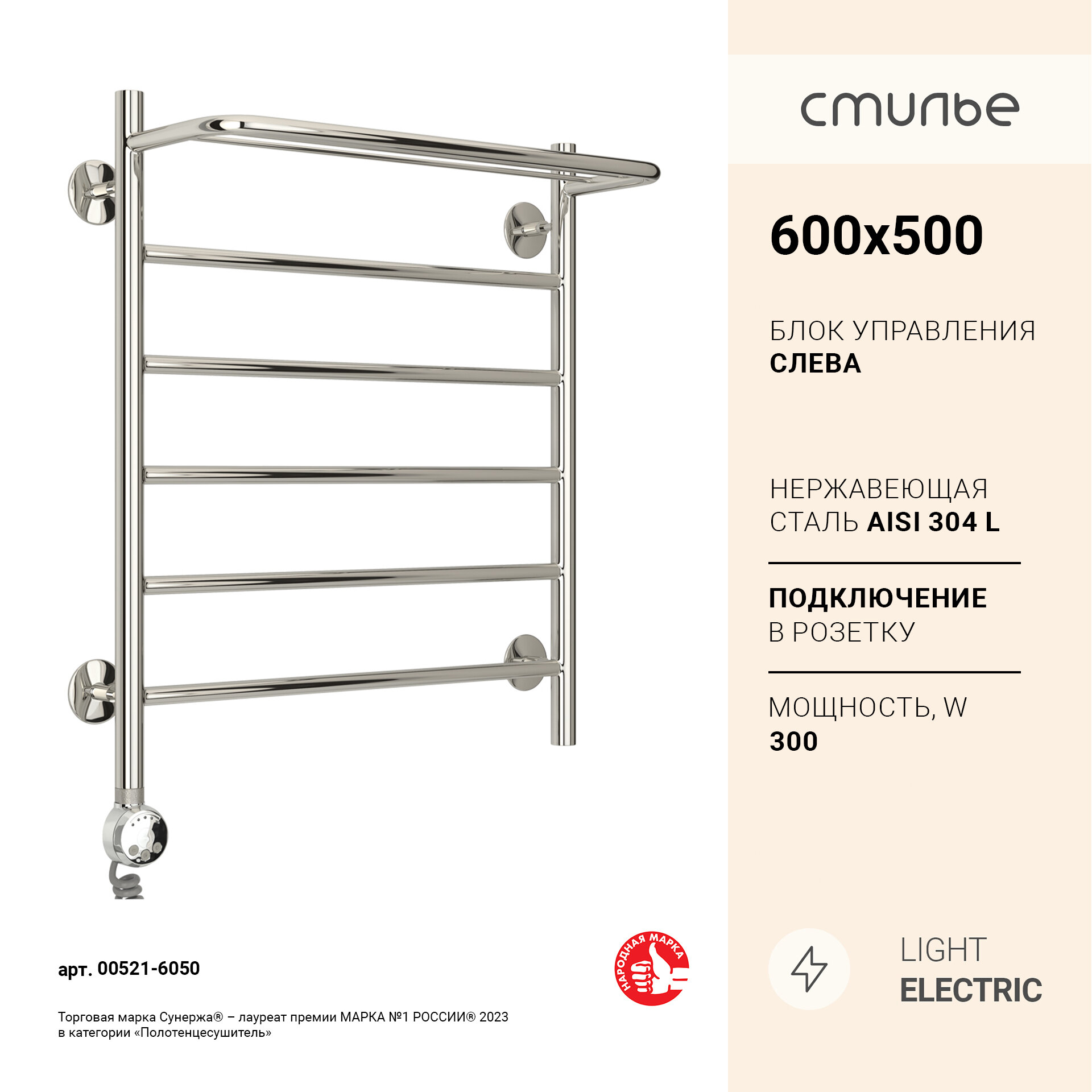 Полотенцесушитель электрический Формат 20 ТЛ 600х500 (Полка + 5) П16 Без покрытия информация: