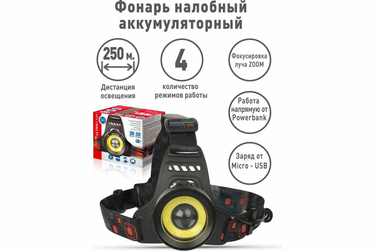 Аккумуляторный налобный фонарь Ultraflash 12188
