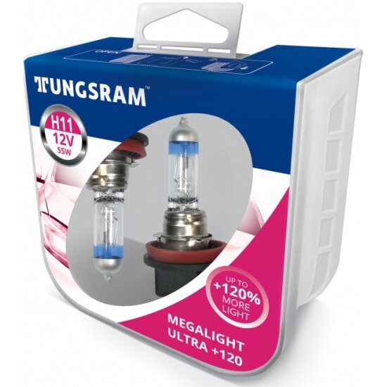 Отзывы на Лампа автомобильная TUNGSRAM Megalight Ultra +120 H11 12V 55W (PGJ19-2), 2шт, 53110SNU PB2