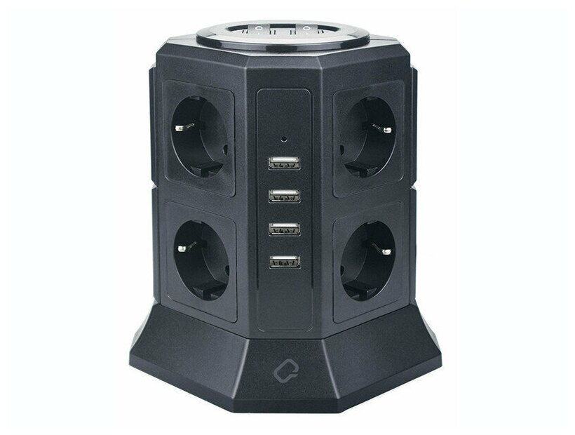Сетевой фильтр Qumo Power Tower Pro 8SP4U (P-0002) (8 розеток, 3*1,0мм, 4xUSB, 2м) черный