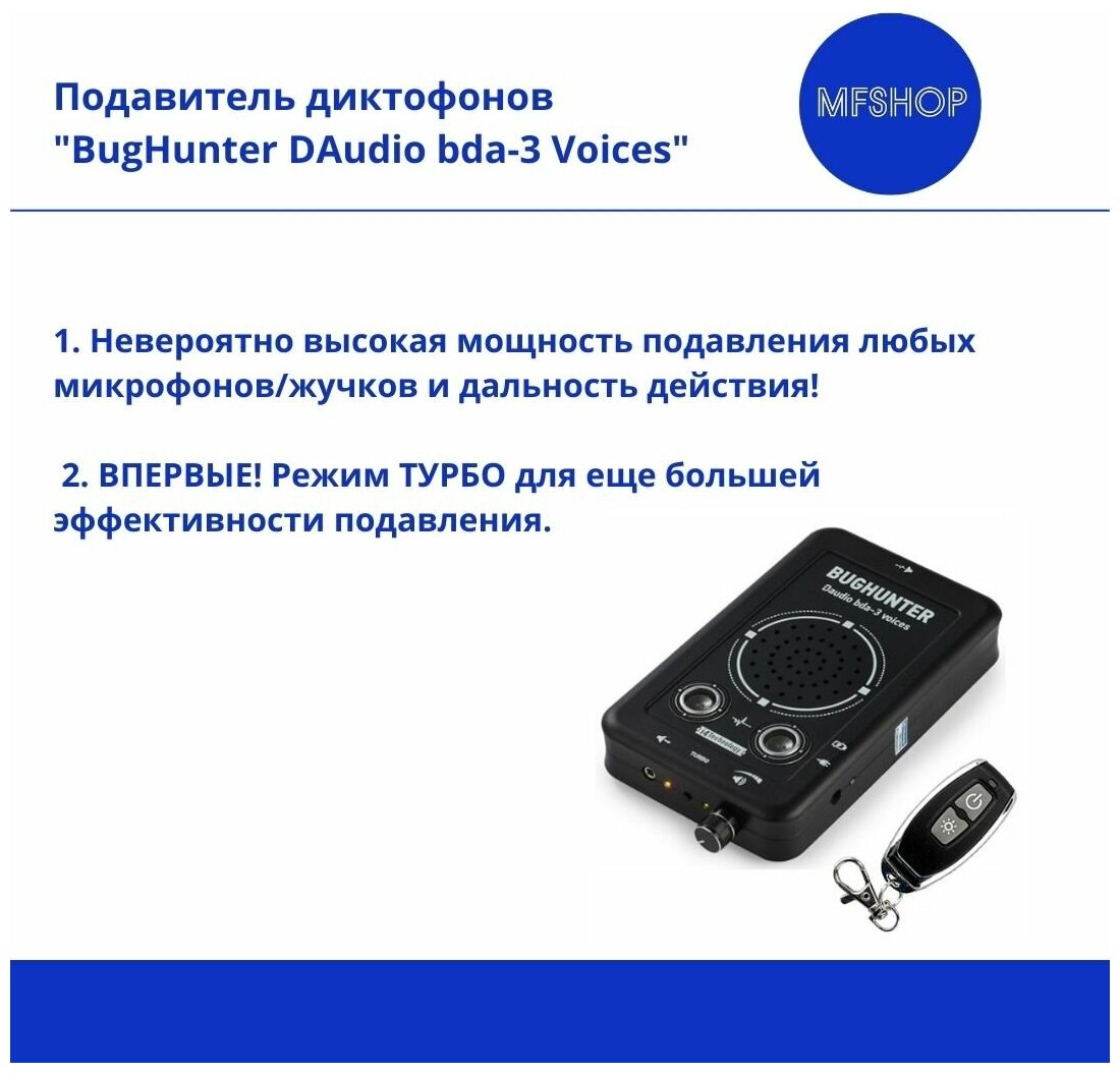 Подавитель микрофонов, подслушивающих устройств и диктофонов "BugHunter DAudio bda-3 Voices" информация: