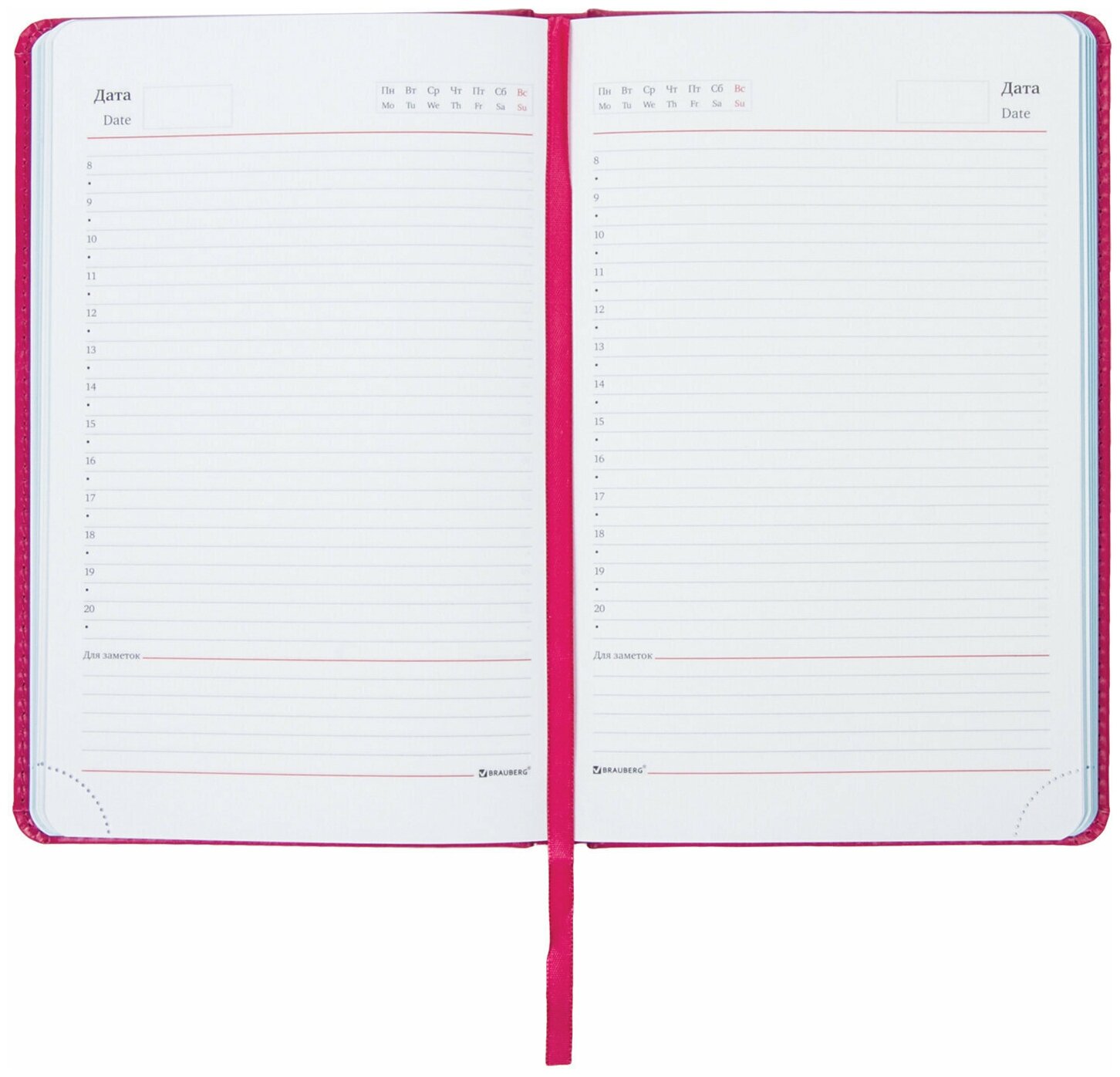 Ежедневник недатированный А5 138х213 мм BRAUBERG "Rainbow" под кожу, 136 л., розовый, 111665
