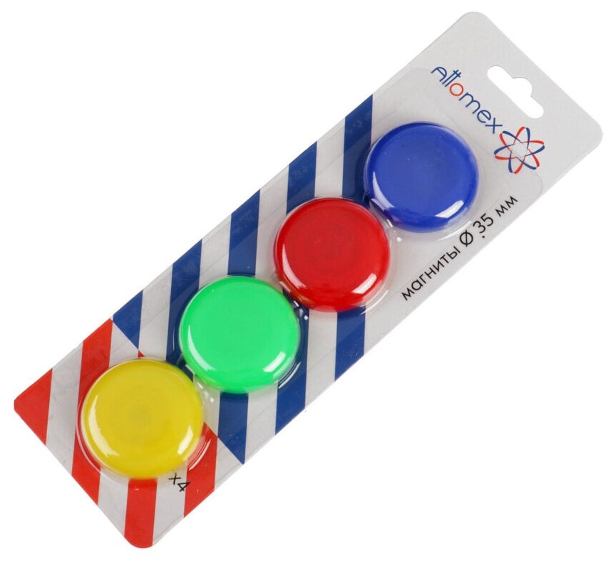 Магниты для досок Attomex 35 мм, 4 штуки, 4 цвета, в картонном блистере, микс./В упаковке шт: 3 информация: