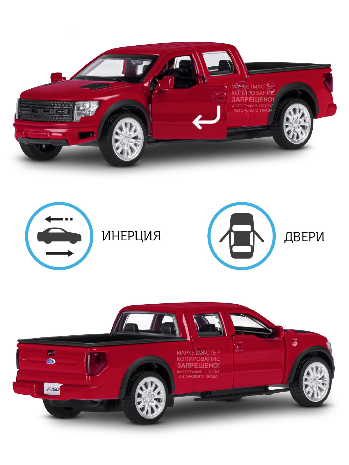 Машинка металлическая Ford F-150 SVT Raptor-2, красный, 1:52, инерция - JB1251273 669 ₽