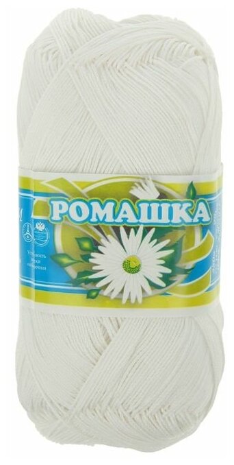 Нитки вязальные ПНК Кирова "Ромашка", 320 м/75 гр, 100% мерсеризованный хлопок, цвет 0101, 1 шт. информация: