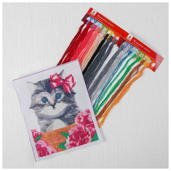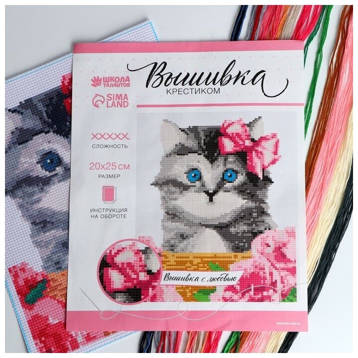 10 цен на Вышивка крестиком "Котик в корзинке" 25 х 20 см. Набор для творчества./В упаковке шт: 1
