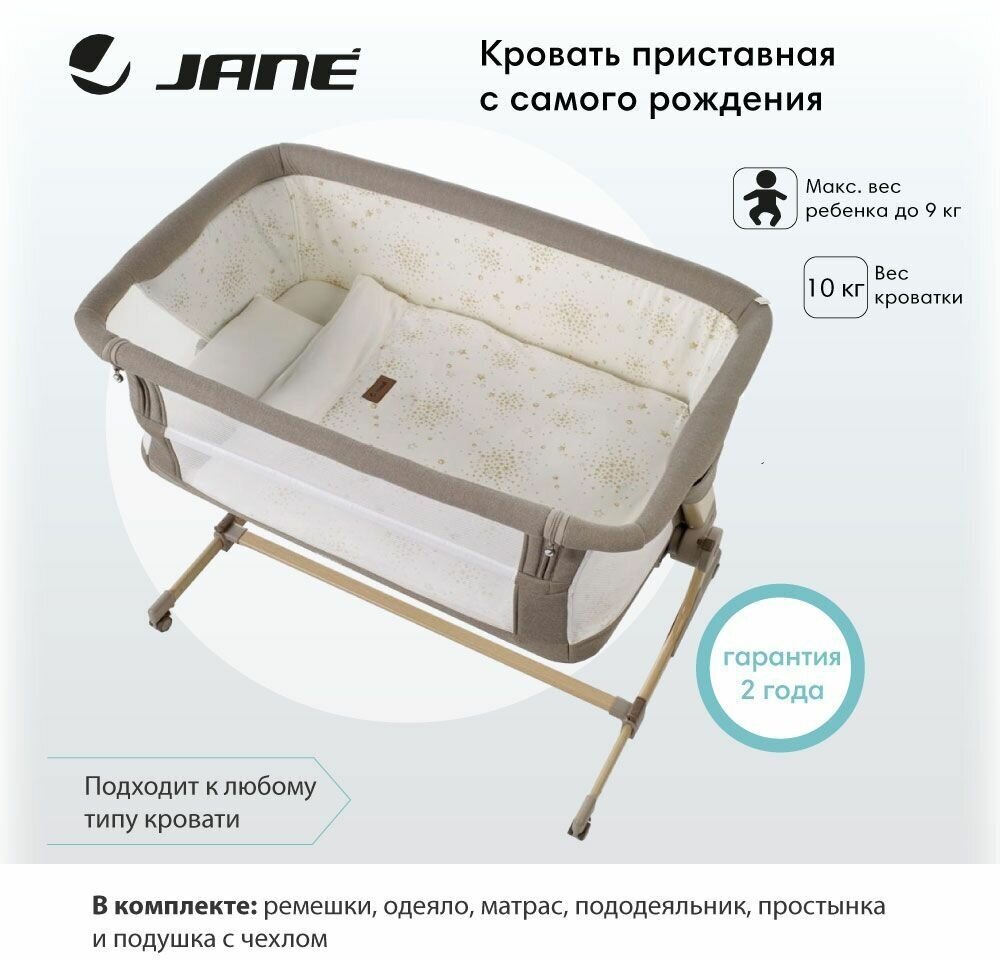 JANE Кроватка приставная 0+ с комплектом постельного белья Baby Side, Glitter информация: