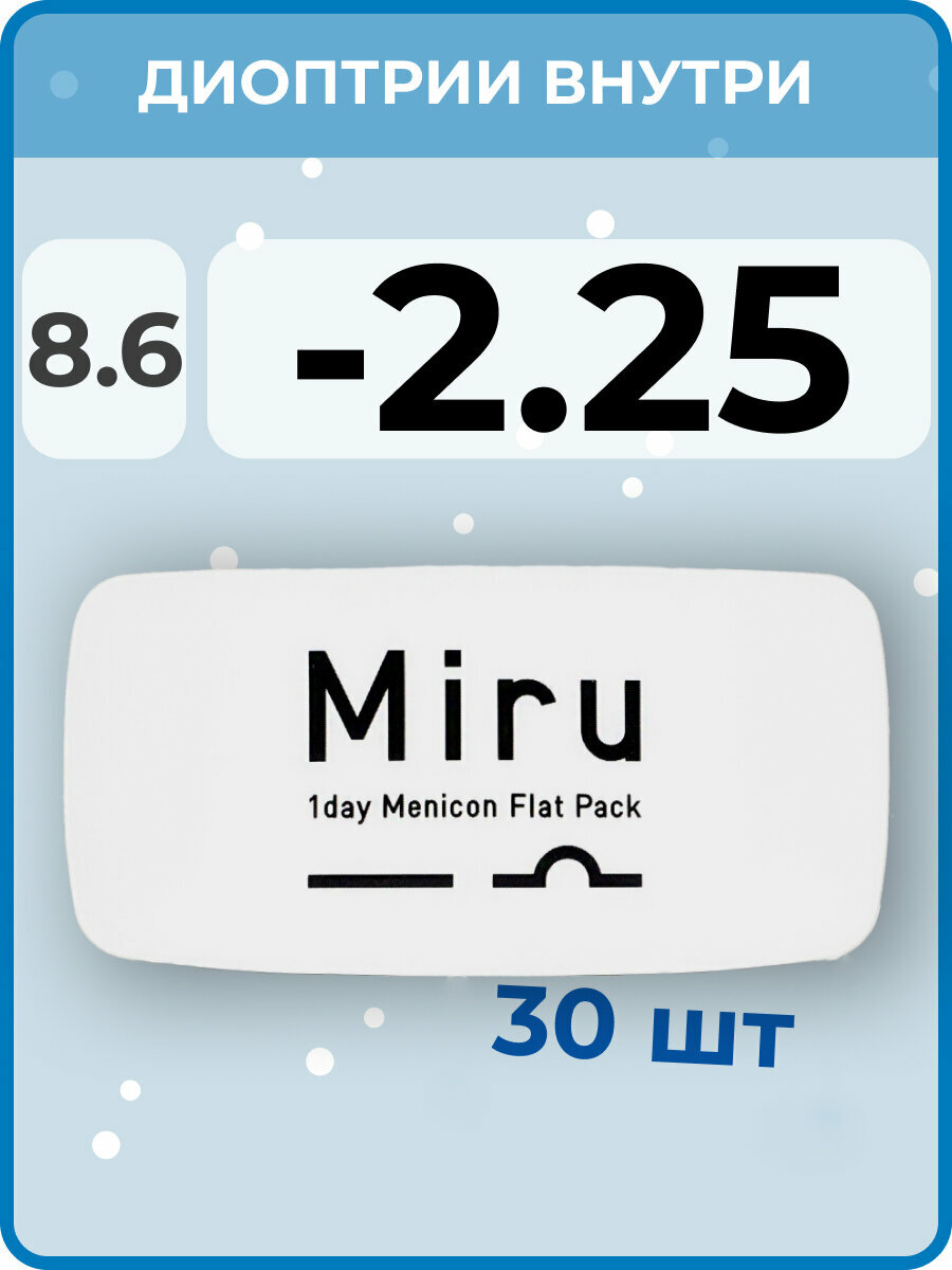 Контактные линзы Menicon Miru 1 day Flat Pack, 30 шт., R 8,6, D -2,25