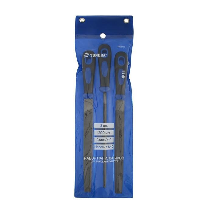 Набор напильников тундра, сталь У10, насечка №2, пластиковые рукоятки, 200 мм, 3 шт../В упаковке шт: 1 информация: