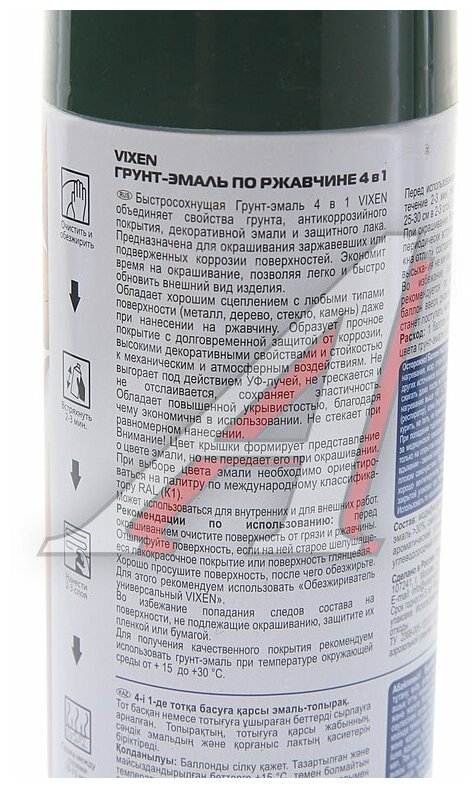 Отзывы на Грунт-Эмаль По Ржавчине 4 В 1, Vixen Зеленый Мох (Ral 6005), Аэрозоль 520 Мл Vx-516005 Vixen арт. VX516005