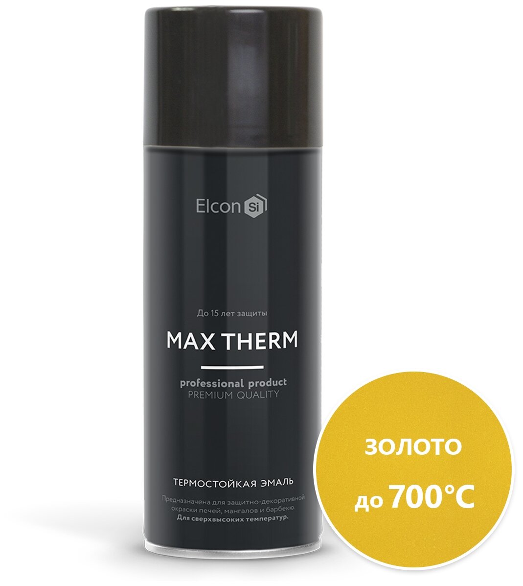 Термостойкая краска Elcon Max Therm для металла, печей, мангалов, радиаторов, дымоходов, суппортов золотая до 700 градусов, аэрозоль 520 мл информация: