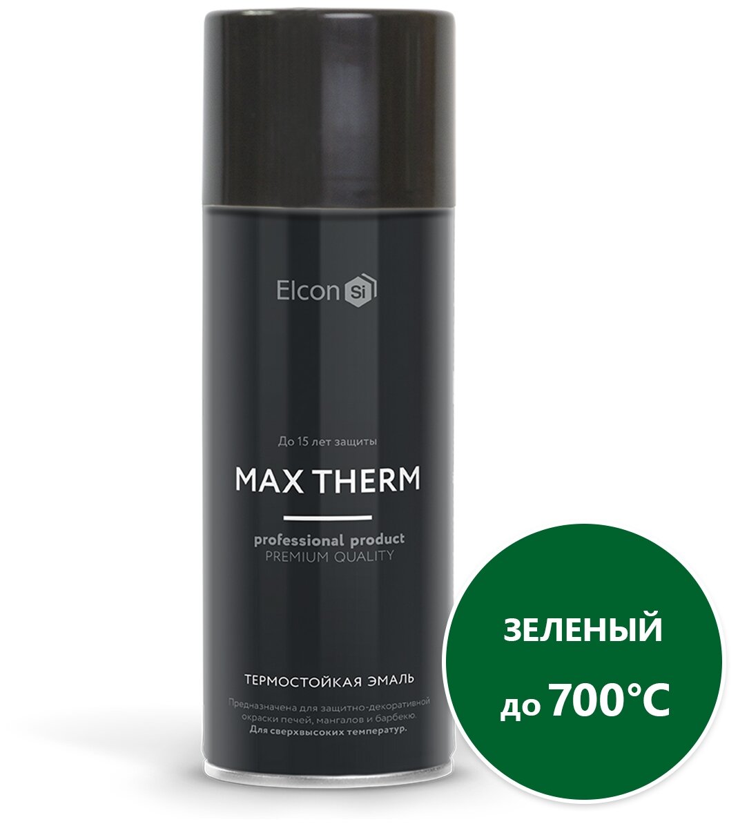 10 цен на Термостойкая краска Elcon Max Therm для металла, печей, мангалов, радиаторов, дымоходов, суппортов зеленая до 700 градусов, аэрозоль 520 мл