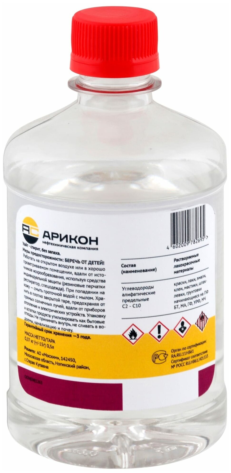 Уайт-спирит Арикон ТУ 0251-001-72021999-2006 бутылка ПЭТ 0.5л WHI05 информация:
