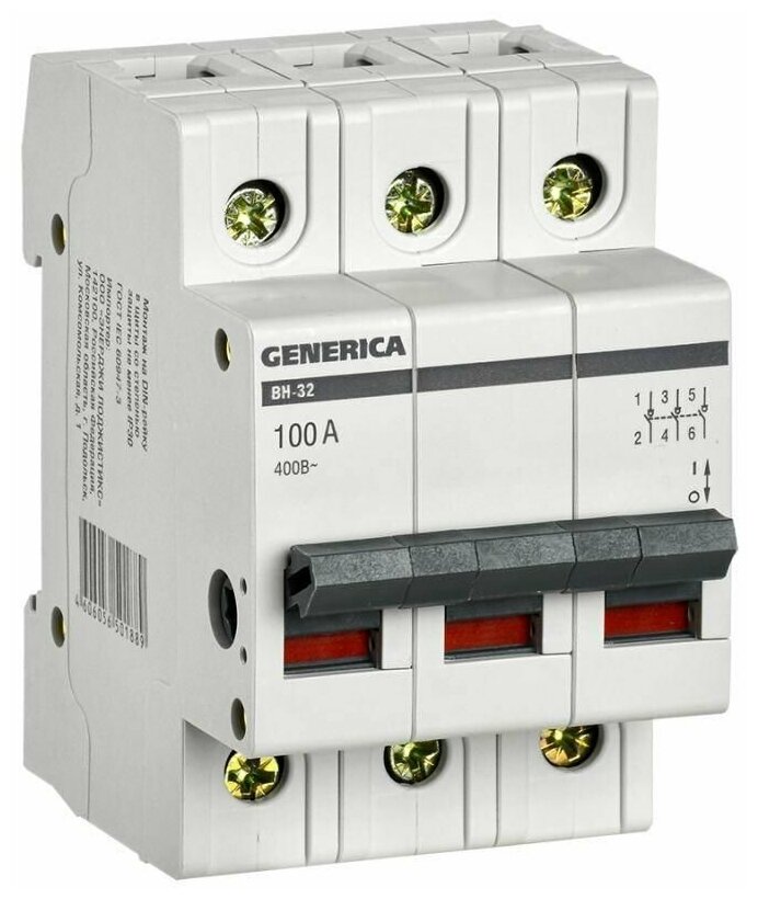 Выключатель нагрузки (мини-рубильник) 3п ВН-32 100А GENERICA IEK MNV15-3-100 информация:
