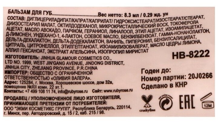 Ruby Rose Увлажняющий бальзам для губ "Ruby Rose", "Glossy Balm", персиковый, 3 тон, 8,3 г информация: