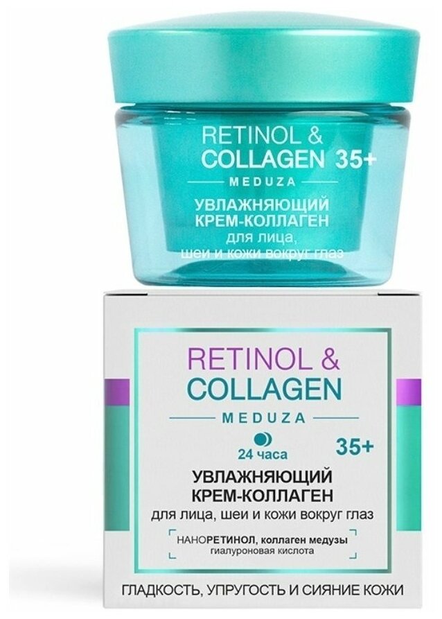RETINOL&COLLAGEN meduza Увлажняющий крем-коллаген для лица, шеи и кожи вокруг глаз, 35+, 24 ч,45 мл.
