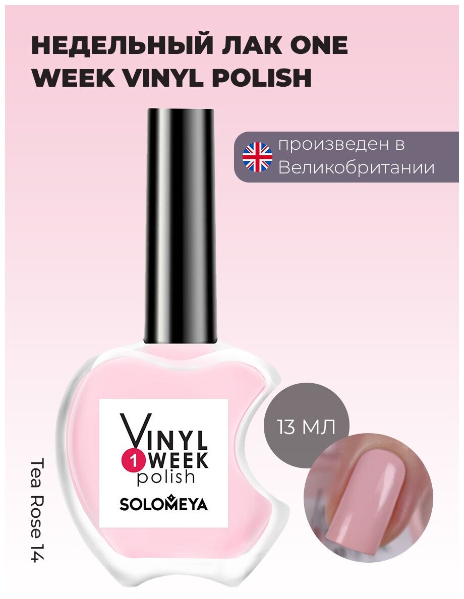 Лак для ногтей стойкий Solomeya, недельный лак для ногтей, глянцевый цвет Чайная роза, One Week Vinyl Polish Tea Rose 14, 13 мл информация: